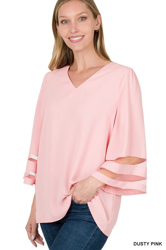 3/4 sleeve wide sleeve blouse with a v neckline. Available in S-3XL. $19/$21