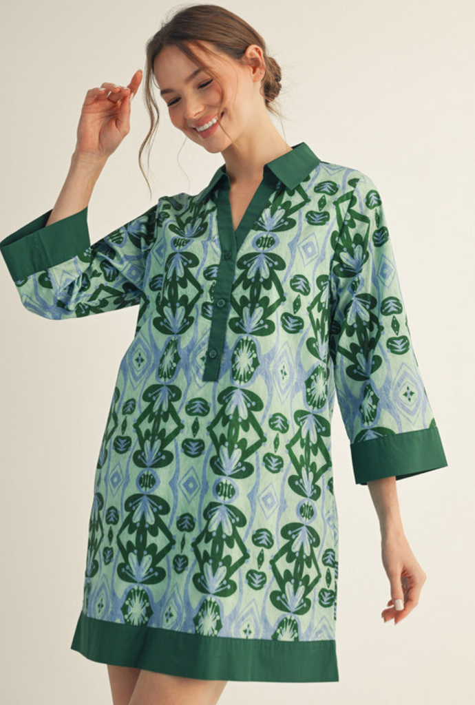 3/4 sleeve dress with lined with pockets. Available in S-XL. $45