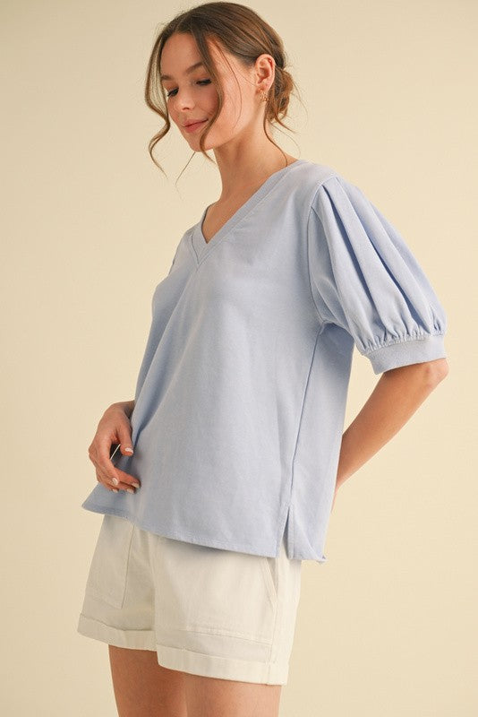 - Shirt sleeve, mineral washed v neck top. Available in S-L. $42