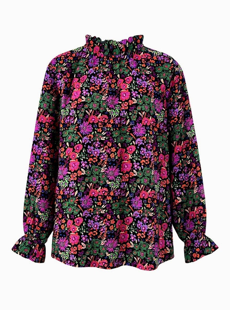 Long sleeve, vibrant floral blouse. S-L. $32