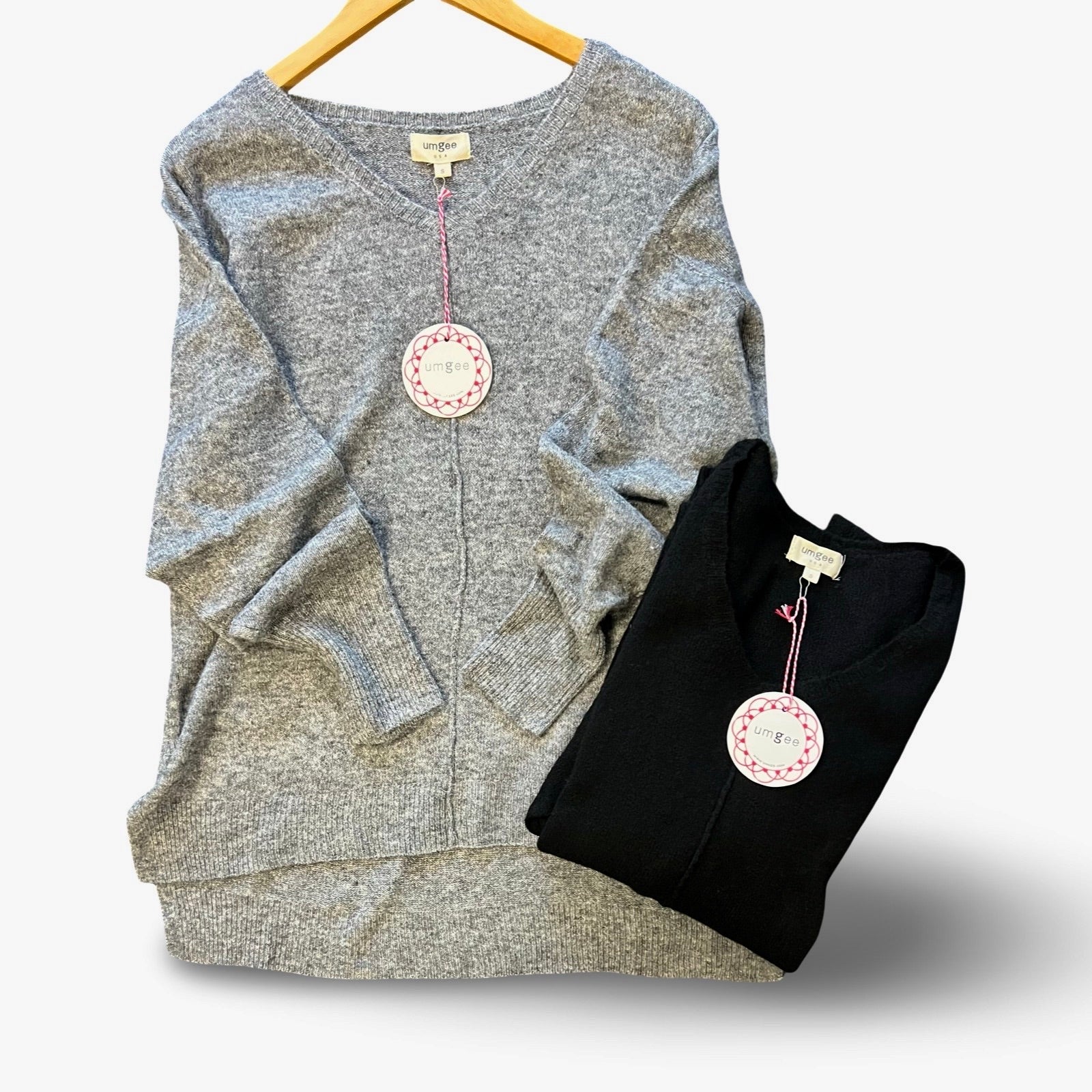 "Kelsey" V Neck Sweater, Grey or Black